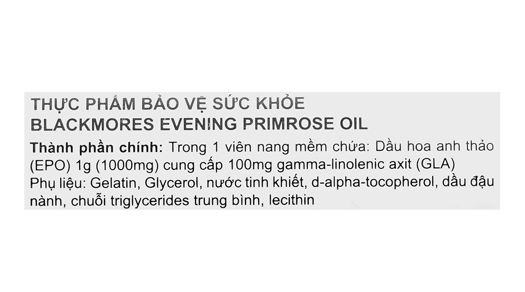 Trong 1 viên nang mềm chứa: Dầu hoa anh thảo (EPO) 1g (1000mg) cung cấp 100mg gamma-linolenic axit (GLA)