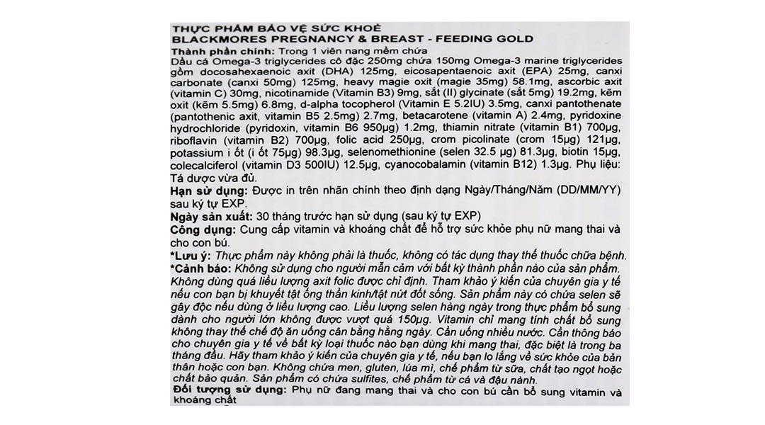 Blackmores Pregnancy & Breast – Feeding Gold dưỡng chất cho bà bầu lọ 60 viên