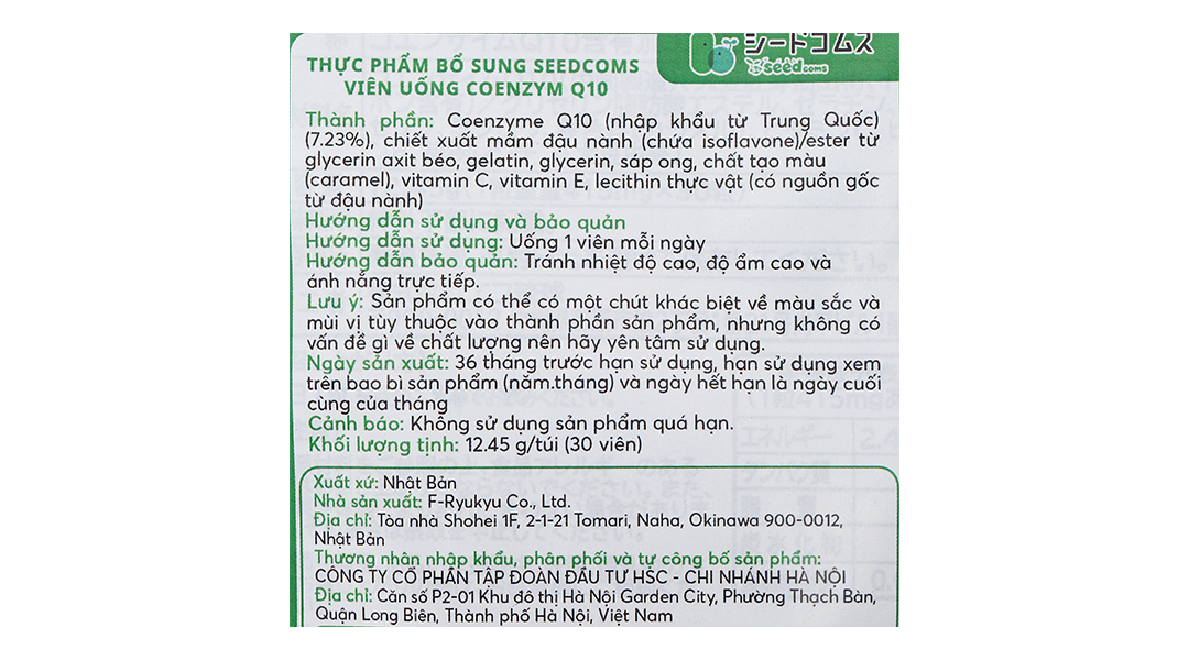 Seedcoms Coenzym Q10 hỗ trợ ngăn ngừa lão hóa da gói 30 viên