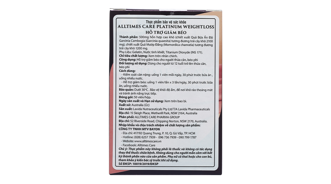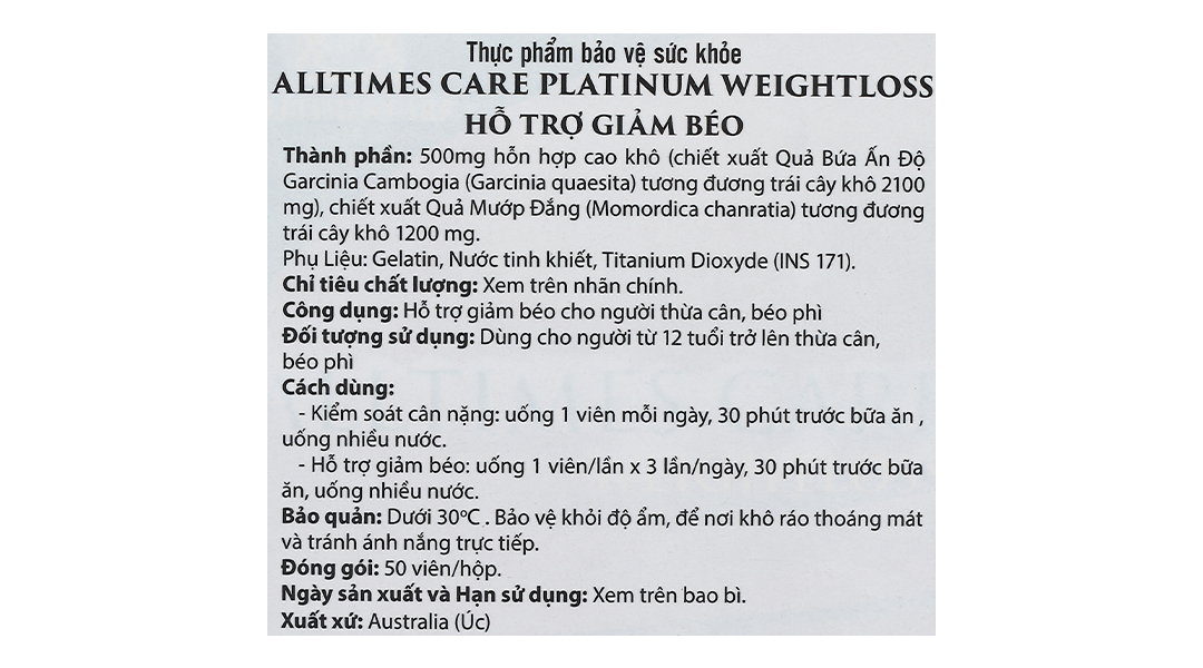 Alltimes Care Platinum Weightloss hỗ trợ giảm cân hộp 50 viên