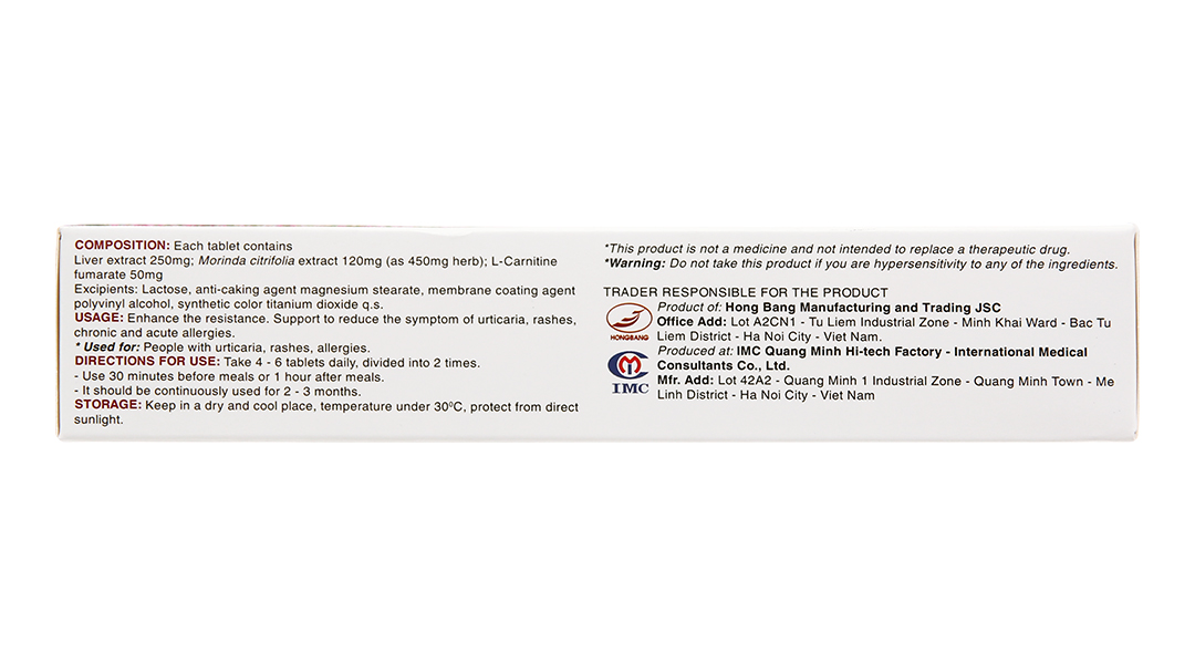 - Hỗ trợ giảm triệu chứng mề đay, mẩn ngứa, dị ứng do thể mạn tính và cấp tính.