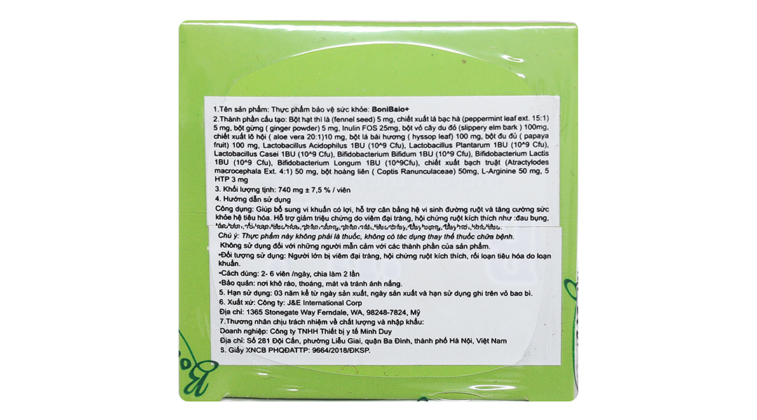 - BoniBaio giúp bổ sung vi khuẩn có lợi và các loại thảo dược, hỗ trợ cân bằng hệ vi sinh đường ruột và tăng cường sức khỏe hệ tiêu hóa, giảm nhanh các triệu chứng của đại tràng như tiêu chảy, đi ngoài nhiều lần.