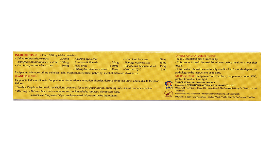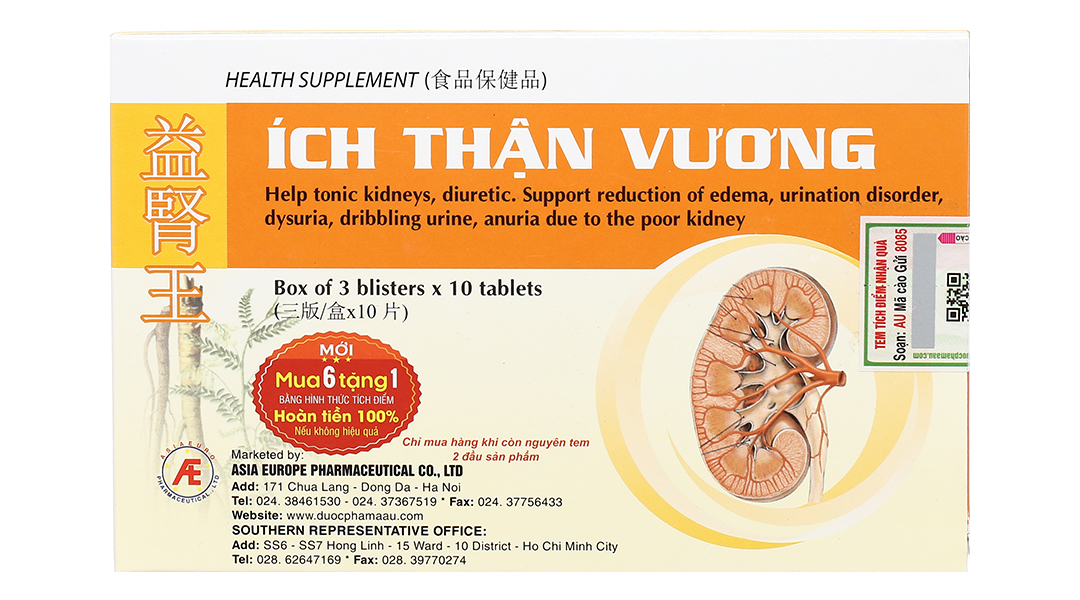 - Với các loại thảo dược có trong bảng thành phần, Ích Thận Vương giúp giảm phù nề, rối loạn tiểu tiện, creatinin huyết và protein niệu, từ đó hỗ trợ giảm các triệu chứng và biến chứng của bệnh suy thận. Ích Thận Vương được sản xuất tại công ty Cổ phần Sản xuất và Thương Mại Hồng Bàng. Đây là đơn vị chuyên thực hiện việc nghiên cứu, bào chế, sản xuất các dòng thực phẩm bảo vệ sức khỏe, thực phẩm chức năng cao cấp, các loại hóa mỹ phẩm được người tiêu dùng đánh giá rất cao và tin tưởng sử dụng.