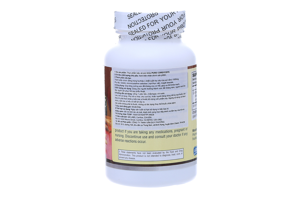 Đông trùng hạ thảo Pure Cordyceps tăng cường sức đề kháng chai 60 viên