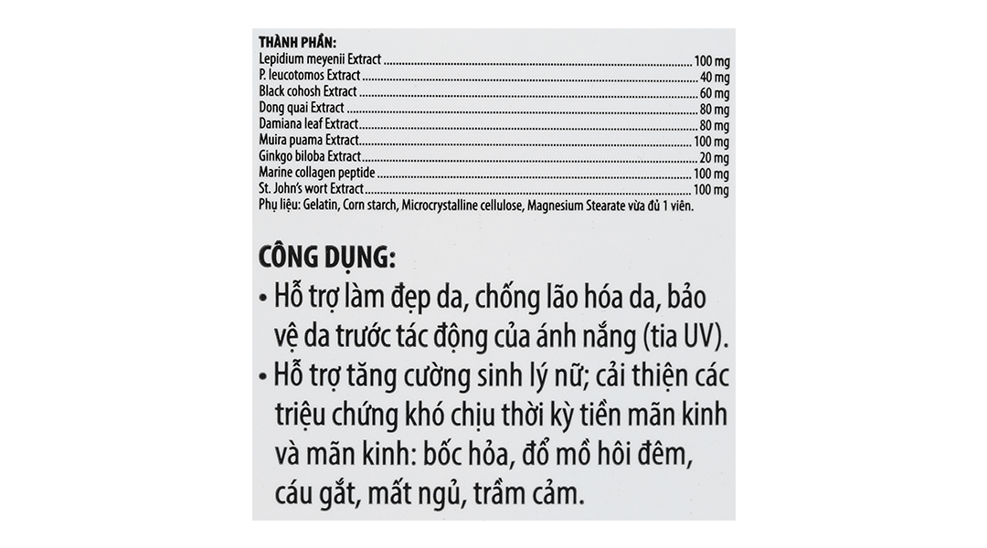 Công dụngHỗ trợ làm đẹp da, hỗ trợ tăng cường sinh lý nữ,...