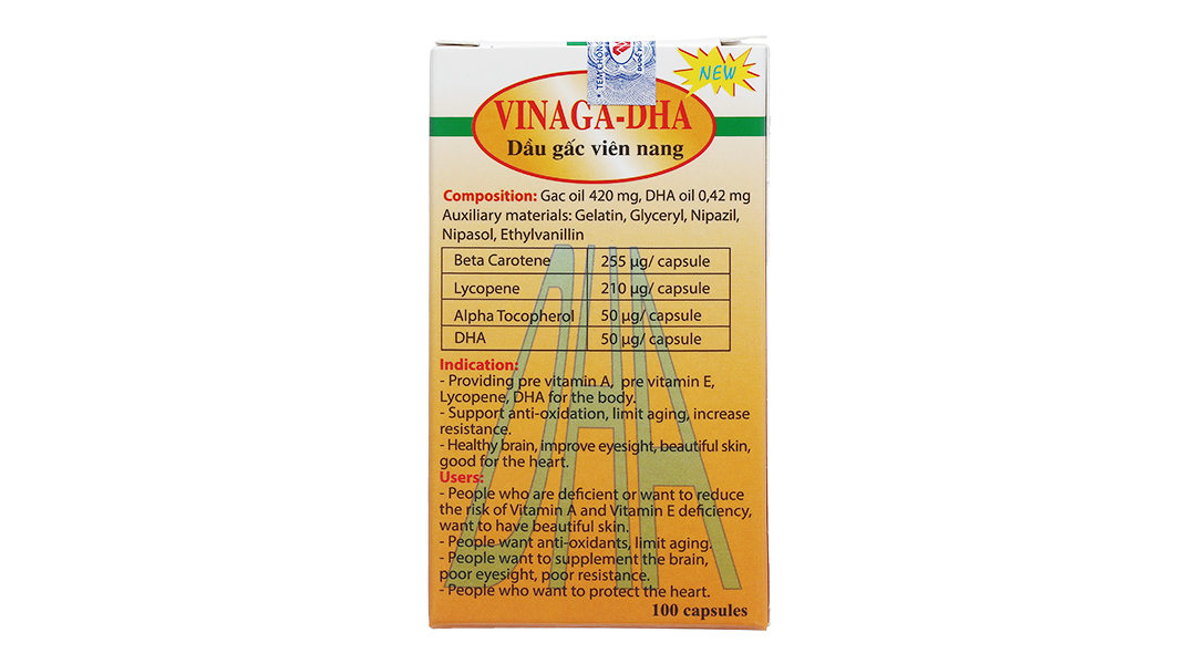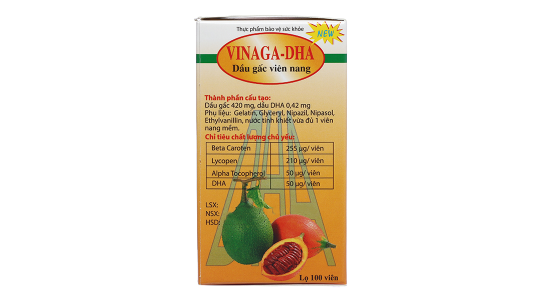 Dầu gấc Vinaga-DHA chống oxy hóa, tăng cường thị lực lọ 100 viên