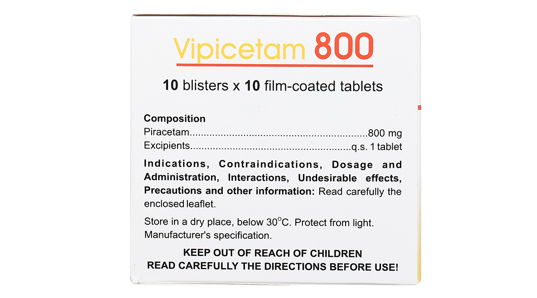 Bảo quản Vipicetam 800 nơi khô, dưới 30°C. Tránh ánh sáng.