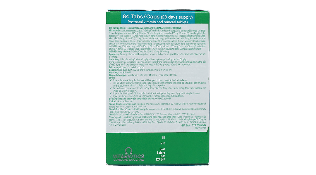 Vitabiotics Pregnacare breast-feeding bổ sung vitamin cho phụ nữ cho con bú hộp 84 viên