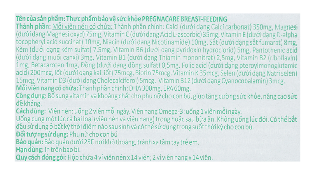 Công dụngBổ sung vitamin & khoáng chất cho phụ nữ cho con bú, tăng cường sức khỏe & sức đề kháng