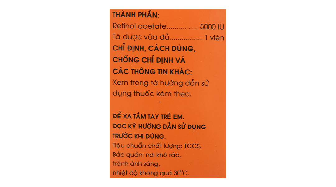 - Điều trị thiếu Vitamin A: Người lớn và trẻ em > 8 tuổi: 3 viên/ngày. Uống 1 đợt 1 – 2 tuần.