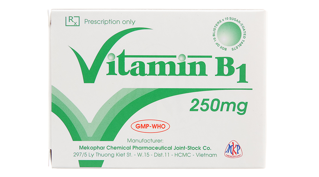 Vitamin B1 Mekophar 250mg trị các bệnh thiếu vitamin B1 (10 vỉ x 10 viên)
