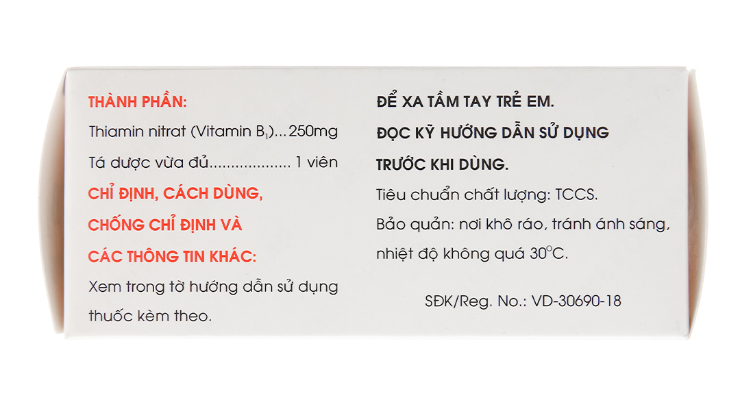 Công dụngĐiều trị các bệnh do thiếu B1, suy nhược cơ thể, đau đầu migrain, đau thấp khớp,...