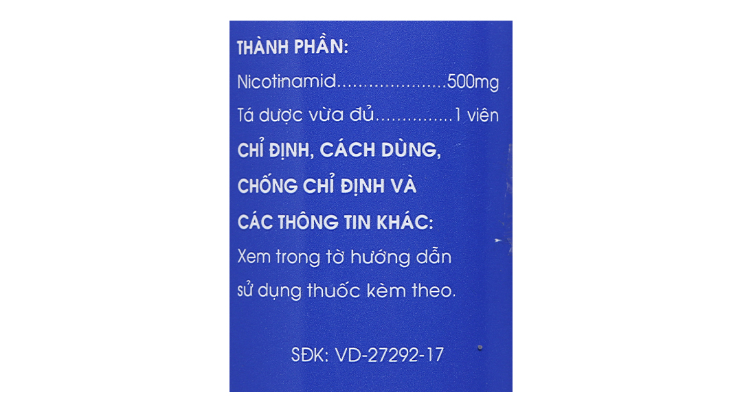 Sau khi uống, Nicotinamide được hấp thu nhanh qua đường tiêu hóa, chuyển hóa ở gan thành N-methylnicotinamide, các dẫn chất 2-pyridone, 4-pyridone và nicotinuric, bài tiết qua nước tiểu ở dạng không đổi.