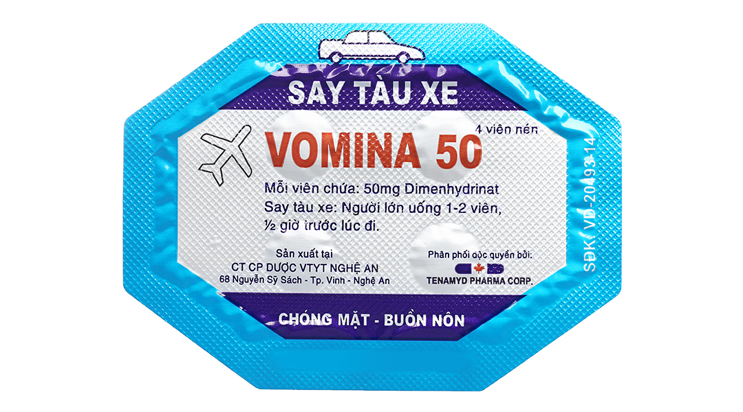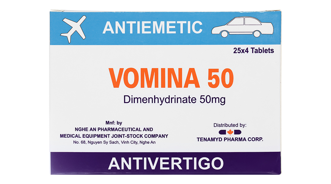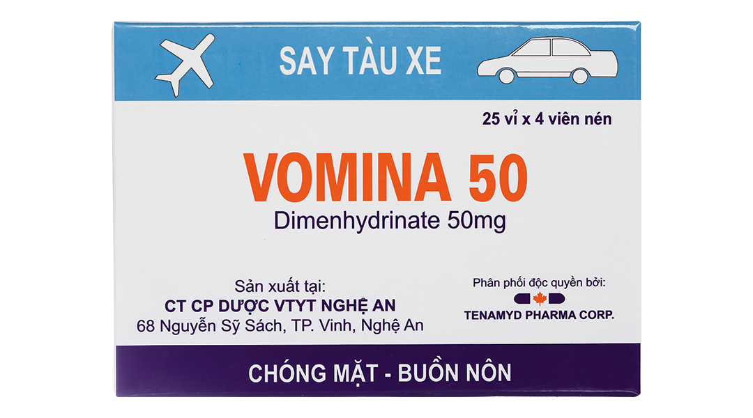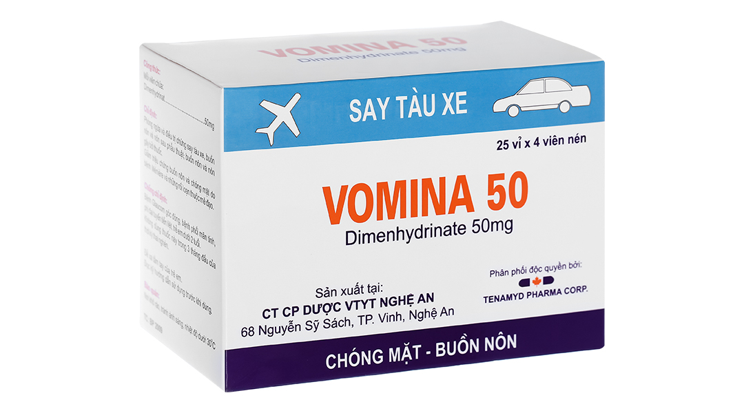 Vomina 50 trị chóng mặt, buồn nôn (25 vỉ x 4 viên)