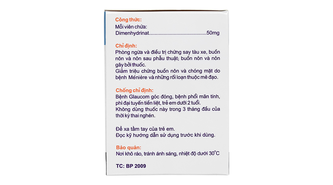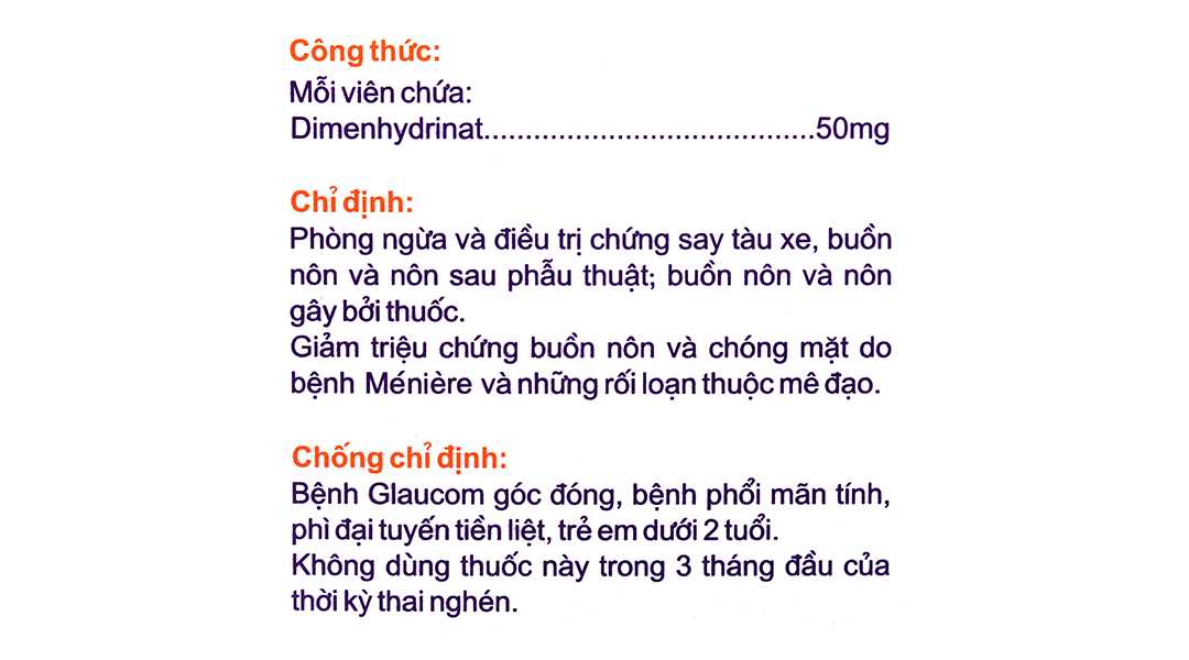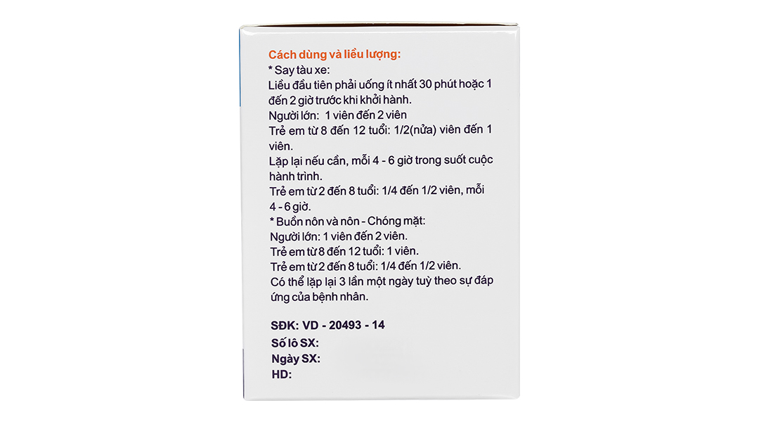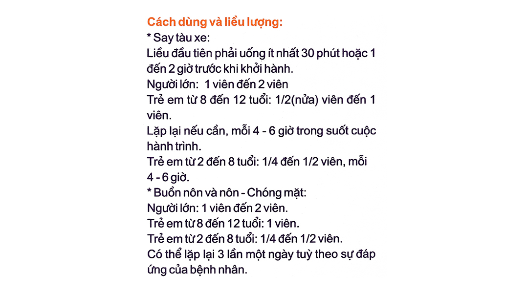Công dụngPhòng ngừa và điều trị chứng say tàu xe