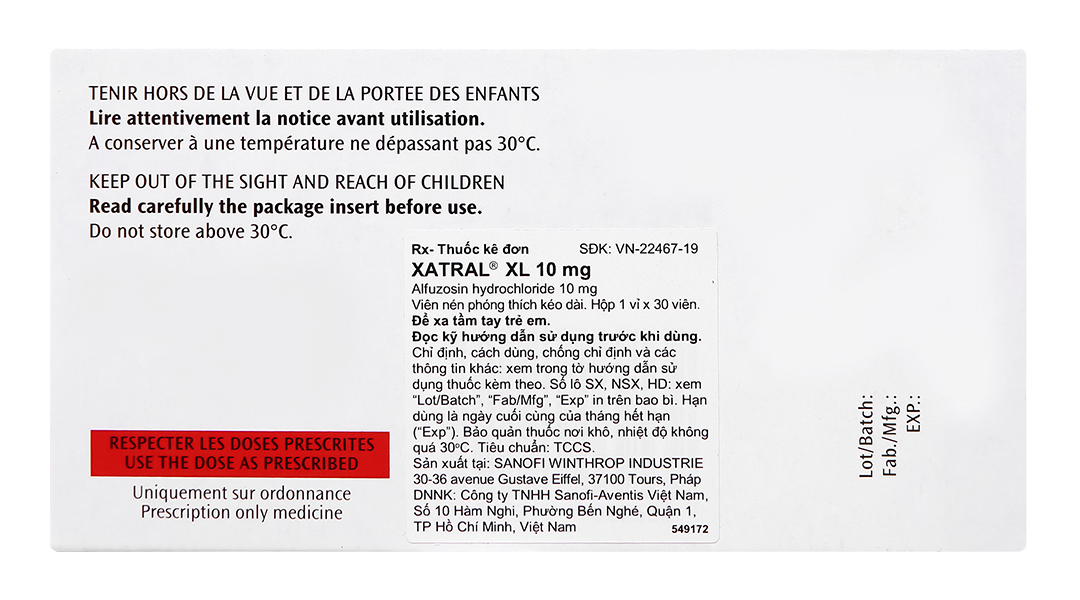 Xatral XL 10mg trị triệu chứng chức năng của phì đại tuyến tiền liệt (1 vỉ x 30 viên)