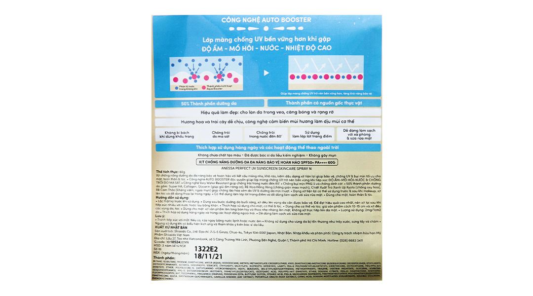 Xịt chống nắng Anessa SPF 50+ PA++++ bảo vệ da hoàn hảo chai 60g