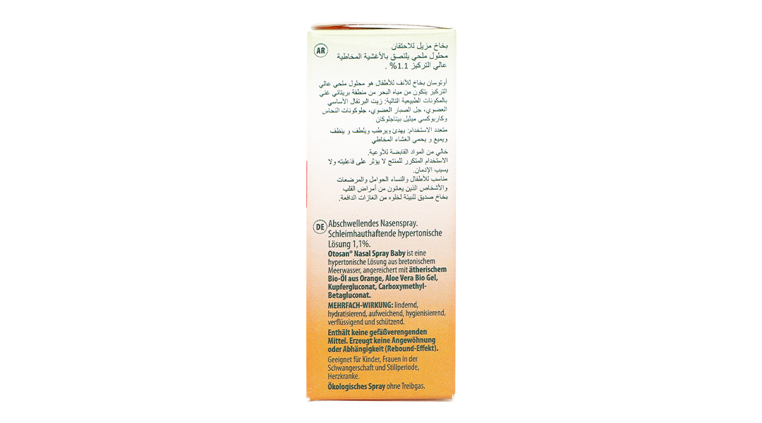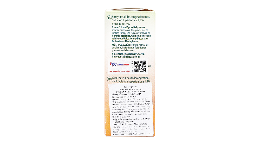 Thành phầnDung dịch hypertonic ưu trương, gel lô hội hữu cơ, tinh dầu cam hữu cơ, đồng gluconate, carboxymethyl betaglucan