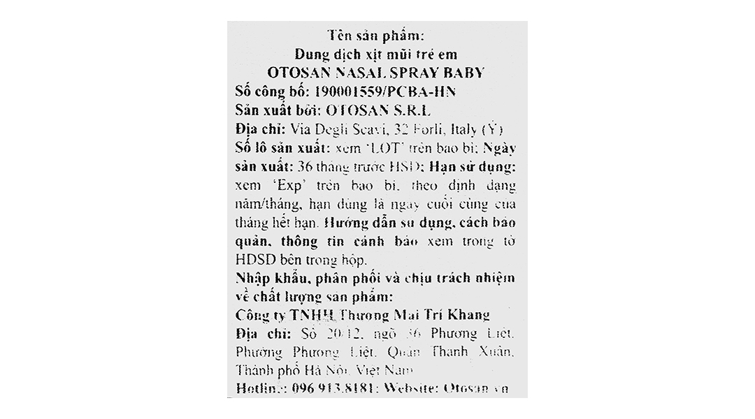 Dung dịch xịt mũi Otosan Nasal Spray Baby hỗ trợ giảm viêm mũi, viêm xoang chai 30ml