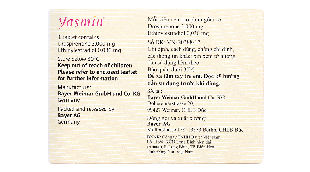 Yasmin thuốc tránh thai hằng ngày (1 vỉ x 21 viên)