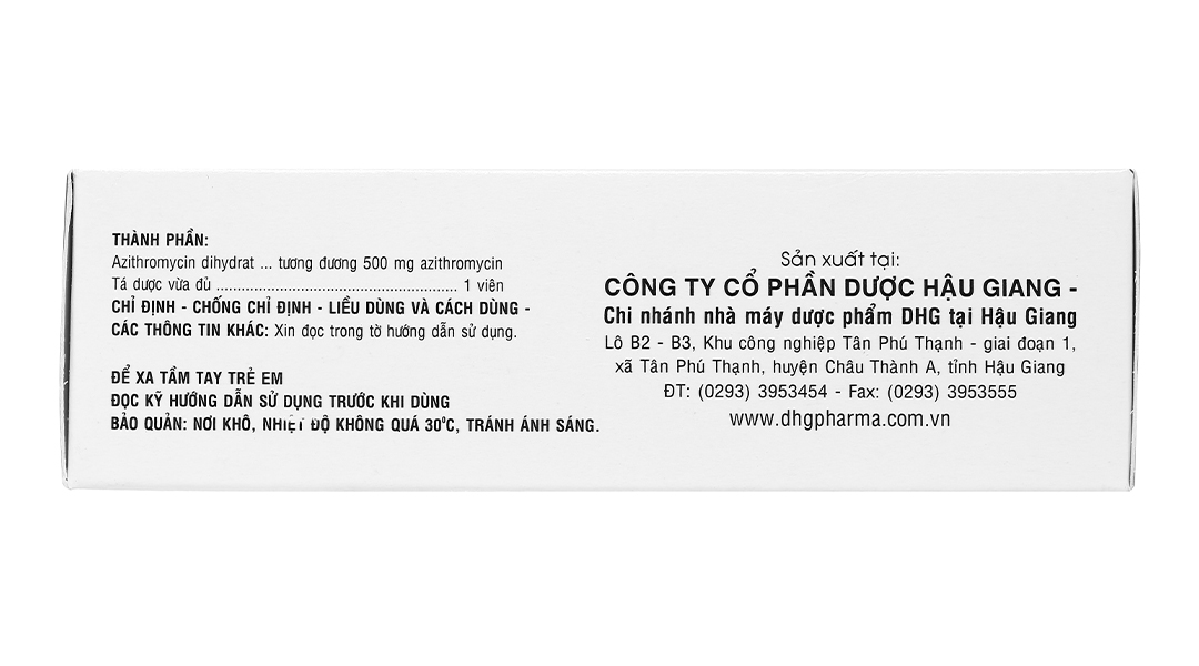 Thành phần hoạt chất: Azithromycin dihydrat tương đương 500mg azithromycin.