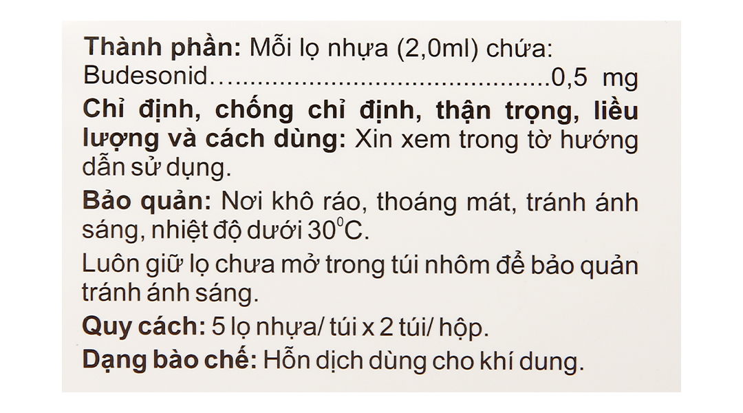 Thành phần hoạt chất: Budesonid 0,5mg.