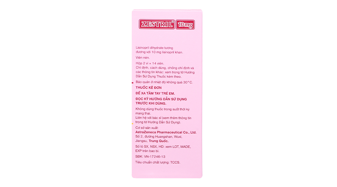 Zestril 10mg trị tăng huyết áp, suy tim (2 vỉ x 14 viên)