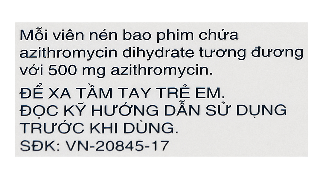 Hoạt chất: azithromycin dihydrat 524.10mg tương đương với azithromycin base 500mg.