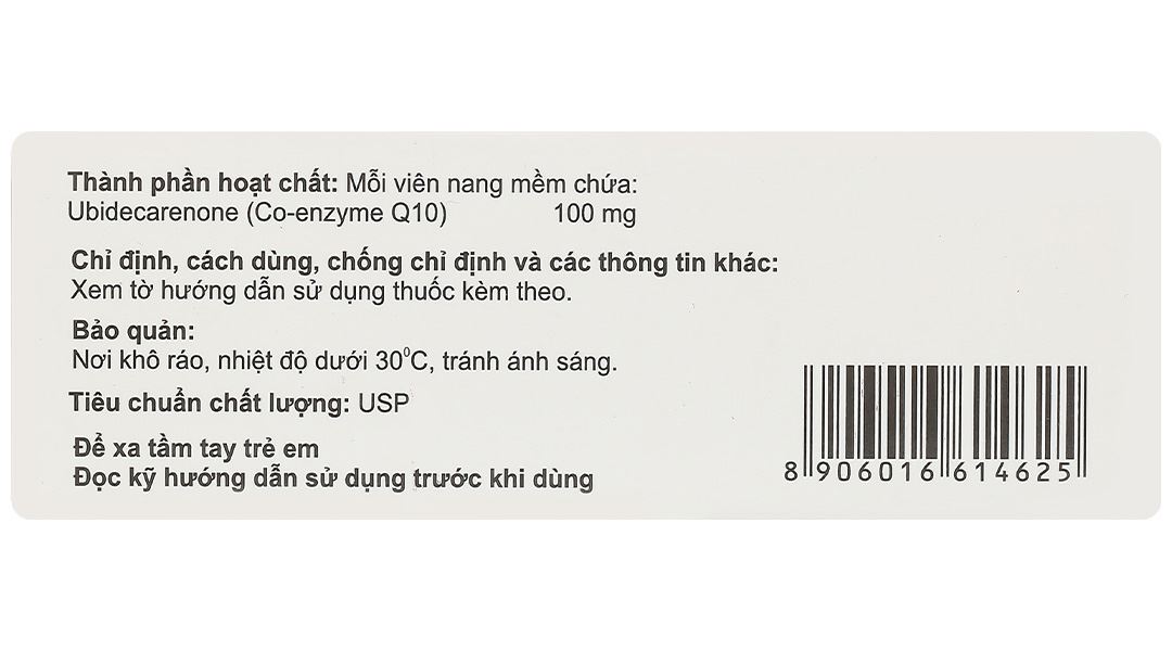 - Thành phần hoạt chất: Ubidecarenone (Co-enzyme Q10) 100 mg.