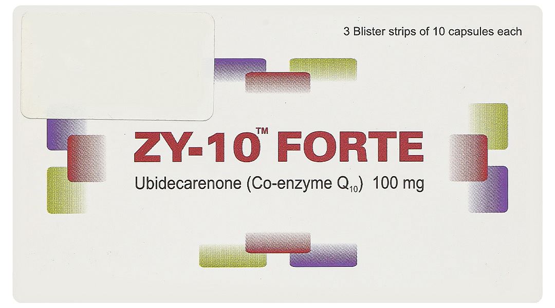 - ZY-10 Forte có thể được sử dụng trong điều trị các bệnh về tim mạch, đặc biệt là suy tim sung huyết. Thuốc cũng được sử dụng để điều chỉnh sự giảm nồng độ CoQ10 trong máu (là kết quả của việc sử dụng các thuốc ức chế HMG-CoA reductase trong điều trị nồng độ cholesterol máu cao).